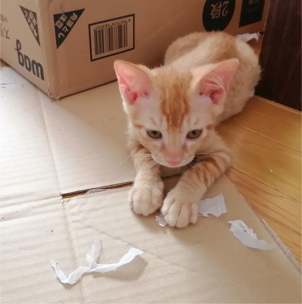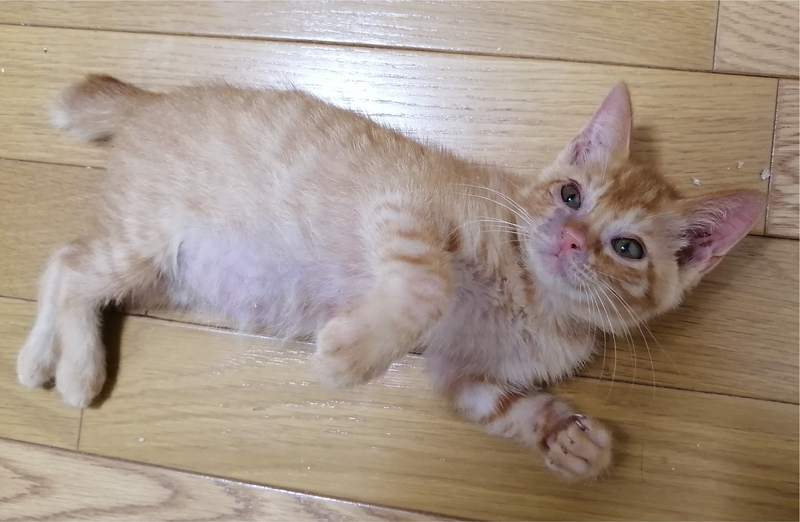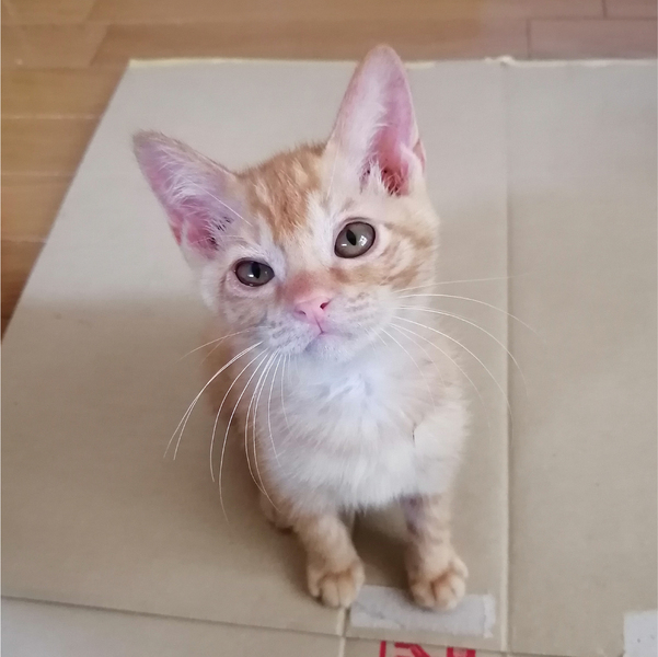 | 特徴(性格など) | 色:茶トラ 目の色:黄土色 体の特徴:短いしっぽがプリプリしてとても愛らしいです!とにかく、とても可愛らしいです。 性格:おてんばですが、おっとり、のんびり、人懐っこいです。 目薬やお薬も嫌がっても爪を立てることなくやりやすいです。 抱っこはあまり好きではありませんが、触られるのは大好きです。 |