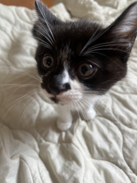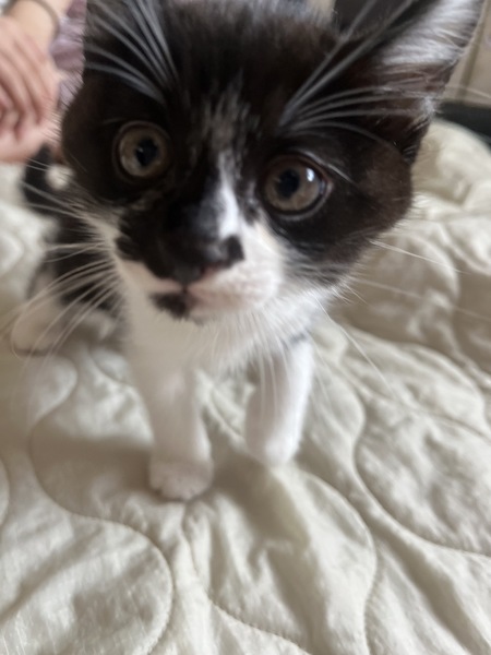 | 特徴(性格など) | 黒と白の男の子で、しっぽが長めです? 甘えん坊さんで指を出すとペロペロ舐めてくれます? |