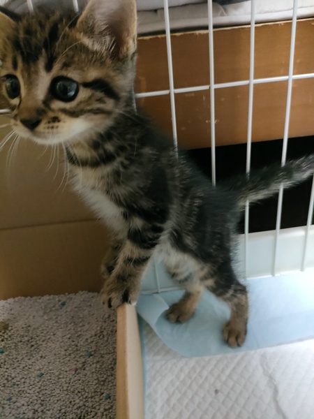 | 特徴(性格など) | 甘えたですごくかわいいです、離乳食3日目ですがよく食べます! 3日前まではママ猫といたので母体免疫あります! ウイルス検査 陰性 検便 問題なし ノミ・ダニ駆虫済みです 色はブラウンタビーと黒が多めの少し毛の長い兄弟です まだまだ小さくご飯も量を分けて1日4回であげています! |