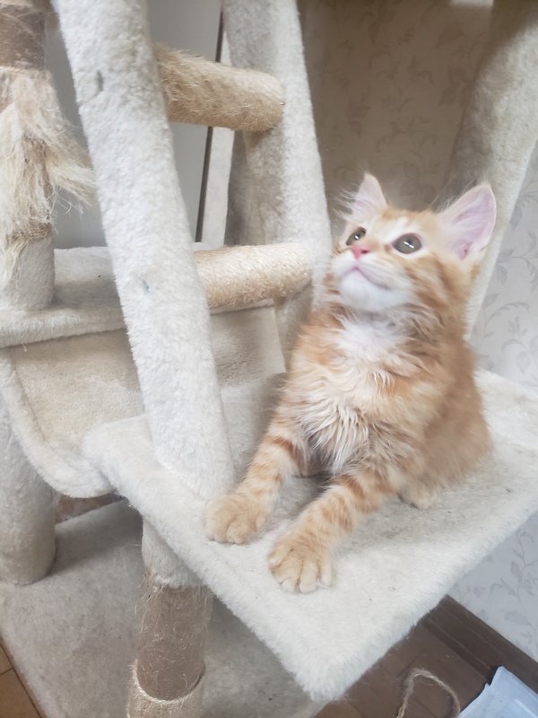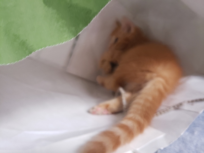 | 特徴(性格など) | 茶トラの、少し毛並みの長めのフンワリした子猫です。 とにかく元気で、好奇心旺盛、人にもよくなつきます。ドライフード、ウェットフードとも、よく食べます。 |