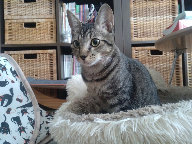 | 特徴(性格など) | 2023.4.3生まれ(推定) 毛色:キジトラ 長いしっぽの先は、ほんのり鍵しっぽ♪ 見た目そっくりな兄妹猫のポムと一緒に、大人猫のお腹をモミモミ・チュパチュパ♡ ちょっぴりビビリなところもありますが、慣れた人にはデレデレの甘えん坊♡ お膝の上に乗りたくて、座ると走ってやってきます! |