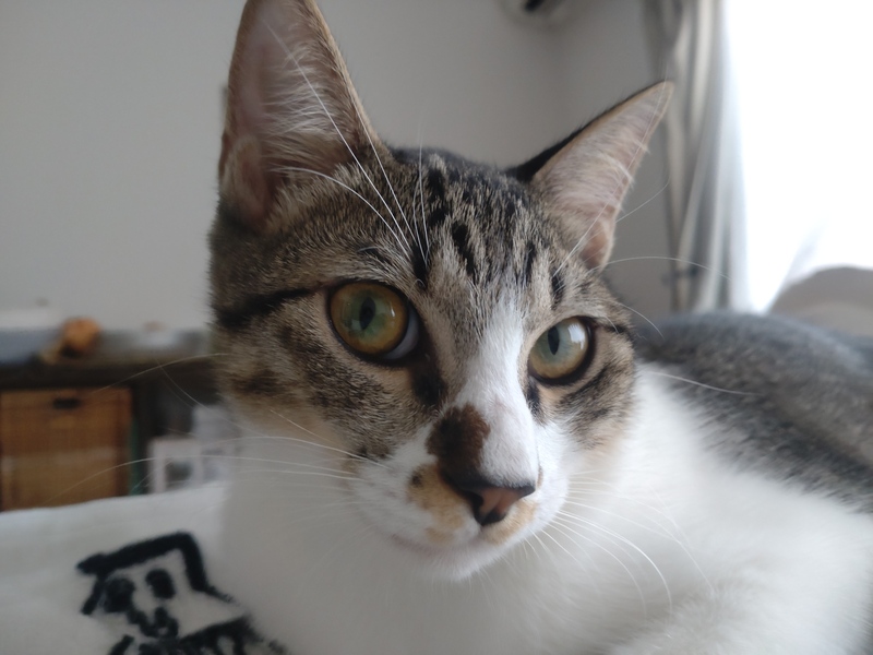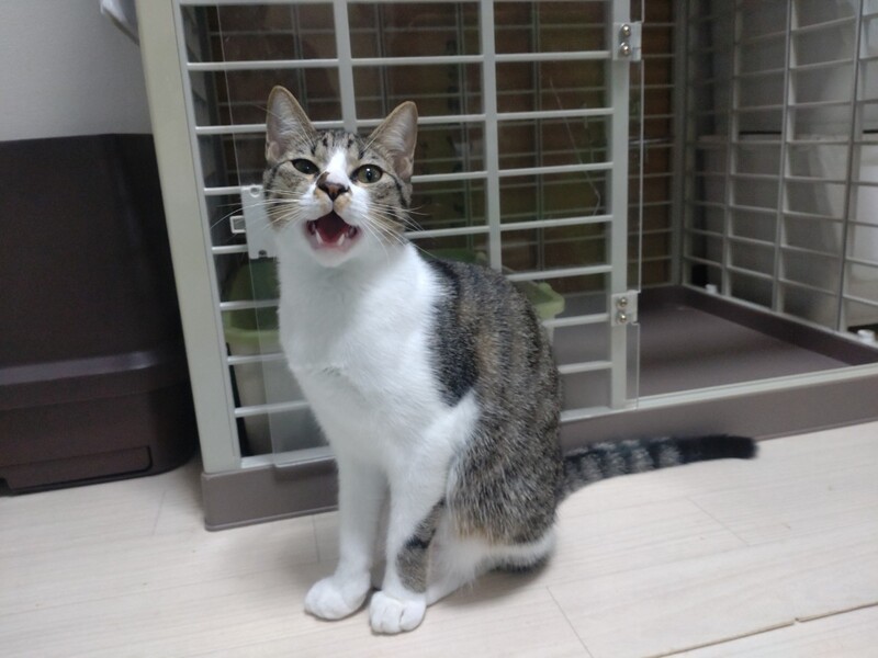 | 特徴(性格など) | 2023.4.3生まれ(推定) 毛色:キジ白 人の顔を見るとゴロゴロと喉を鳴らし、 かわいい鳴き声でアピールしてくれます♡ お膝に乗せてナデナデされるとご機嫌さんでくつろいでいます。 オモチャで遊ぶのも大好き♪ 食いしん坊で甘えん坊さんです。 兄妹の中では1番体も大きく、ムチムチしています。 |