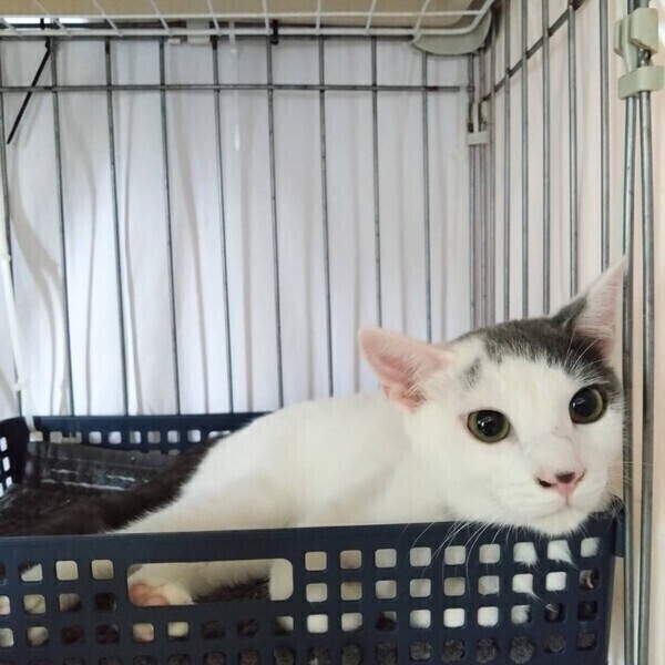 | 特徴(性格など) | ◆たけしくん おもちゃで遊ぶのが好きなびびりくん ○横浜市内にて保護しました。 ○1歳くらい(2024年4月時点)の白グレーの男の子です。 ○しっぽは幸せを呼ぶ鍵しっぽです。 ○臆病な子です。 ○まだ人が怖いようで、ケージの扉を開けるとシャーシャーして逃げます。 ○でも美味しいご飯とおもちゃで遊ぶのは好きです。 ○たけしくんのペースに合わせて、ゆっくり歩みよって頂けると幸いです。 ☆単身のかたはご相談ください。 ★ワクチン1回接種済み、不妊手術済み。 ★猫エイズ、猫白血病ともに陰性。 ★★お見合いを設定することも可能です。まずはお申込みください★★ |
