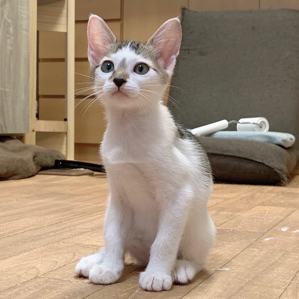| 特徴(性格など) | 愛護センターから引き出してきた時には300g台のミルクっ子だったので、ミルボラさんのところにしばらくお世話になっていました。保護主宅へお引越ししてからはとにかく元気一杯!遊ぶのも食べるのも大好きな女の子です。いつもぴょんぴょんと跳ぶように走り回って兄弟と遊んでいます。人間のことも大好きで撫でたり抱っこするとすぐに喉をゴロゴロ鳴らしてくれます。 ケージを開けた瞬間に降ってくる勢いで寄ってくる可愛い子たちです(笑)とにかく疲れ知らずでずっと遊んでいて、見ていて飽きません。可愛い前髪とお鼻にある茶色い模様がチャームポイント。これから成長するにつれ、どんな面を見せてくれるか保護主も楽しみにしています。 前回の譲渡会で兄妹3匹は先におうちが決まりました。甘えん坊で活発なはくちゃんにもずっとのおうちが見つかりますように。 健康管理をしっかりしてくださる方、また安全に暮らせる様にお部屋のお片付け、目に見える形での脱走防止対策を徹底してくださる方とご縁がつながると嬉しいです。対策等でわからないことは アドバイスさせていただきますので、疑問点などは遠慮なく聞いていただきたいです。 ご自宅の玄関・開ける窓・ケージを置くお部屋などのお写真をご持参いただきますと、より具体的なお話ができると思います。 |