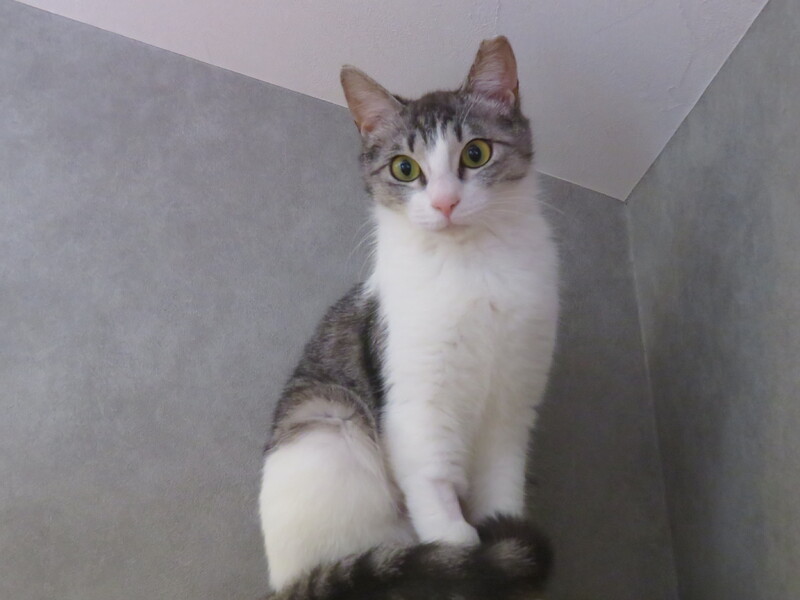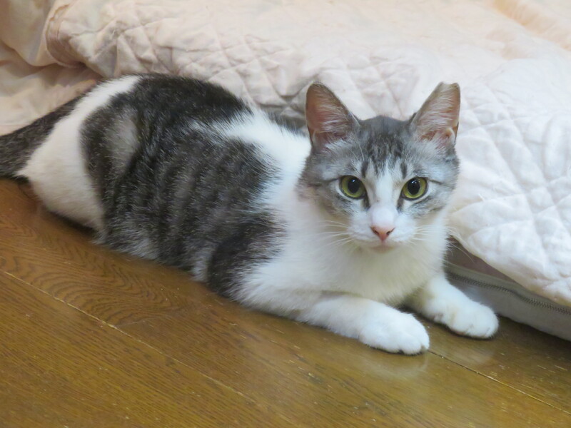 | 特徴(性格など) | 【仮名】ニコちゃん 【外見】サバ白、お鼻や肉球がピンク色、アイラインくっきりの美少女 【性格】目があっただけでゴロゴロ、くねくね。とっても人なつこい。元気よすぎておてんばです。 【しつけ】トイレ・ケージしつけ済 |