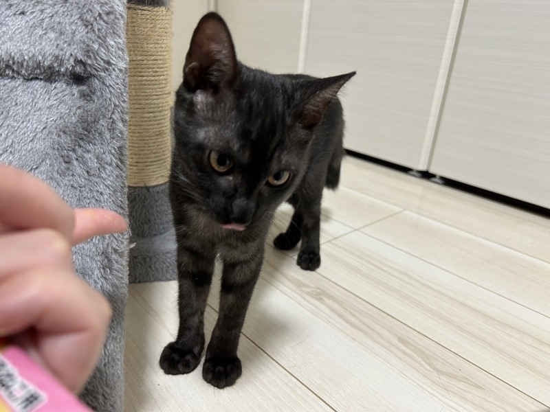 | 特徴(性格など) | 2023.4.4生まれ(推定) 毛色:黒 ブラックスモーク 黒が多めのブラックスモーキーな女の子。 小さなお顔にまんまるなお目々が彼女のチャームポイントです! 最初は緊張しちゃうかもしれないけど、 慣れると体を伸ばして撫でてアピールも♡ 遊ぶこと大好き!な小宵ちゃんです。 |