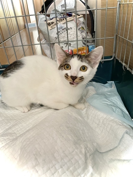 | 特徴(性格など) | 大きな特徴は、3本の口ひげ柄です。 美人顔なのに、思わず笑ってしまうほど可愛いです。 写真よりも、小さめな幼顔です。 初めて会う私にも、大人しく抱かれます。 威勢する事も、引っ掻く事も、噛む事もありません。 温和な性格だと思います。 ノミダニ駆除済み ワクチン済み 白血病、エイズ共に陰性 獣医さんお墨付きの元気な猫ちゃんです。 |