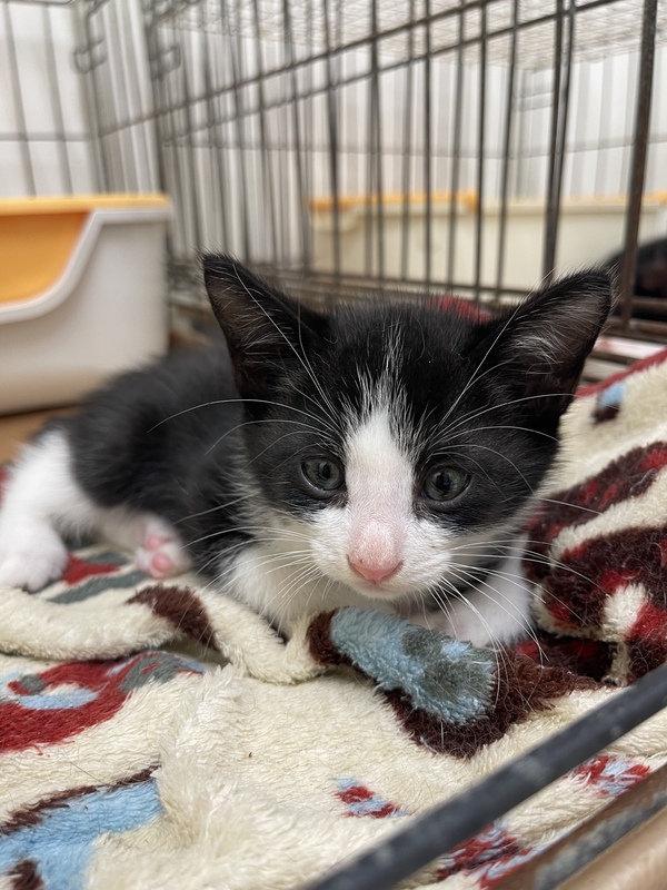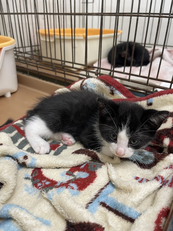 | 特徴(性格など) | ハチワレ4兄弟で保護されました! お顔 白黒をハチワレ からだ お腹白、背中くろ 肉球もお鼻もきれいなピンク色! 元気いっぱいでもぐもぐご飯をたべまくり、兄弟と遊んでいます。 ワクチン摂取後開始予定です! |