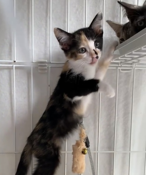 | 特徴(性格など) | よく食べてよく遊んで元気いっぱいです。他に4匹兄弟がいます。「兄弟と一緒に家族になれるとうれしいな(猫の声)」トイレも上手にできます。 | ||