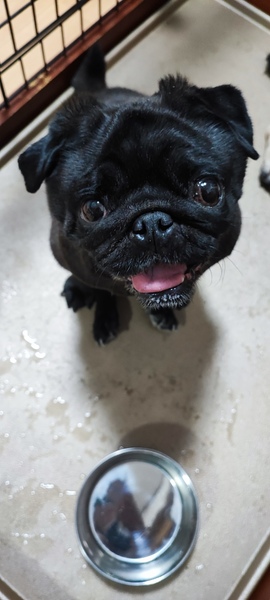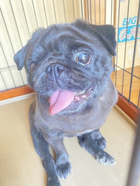 | 特徴(性格など) | 黒色メスのパグです。かなりの構ってちゃんです。 常に人を観察し隙あらば近寄って来ます。 食欲旺盛で元気です。 |
