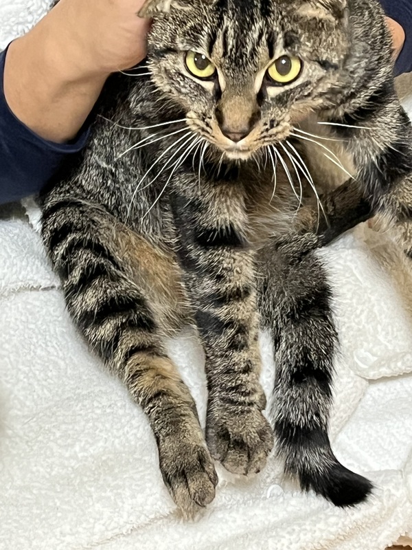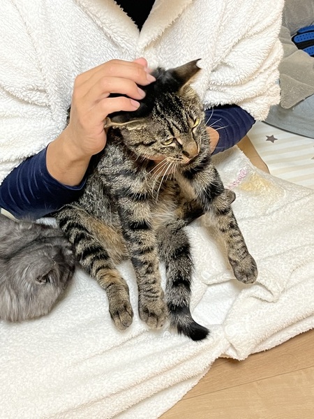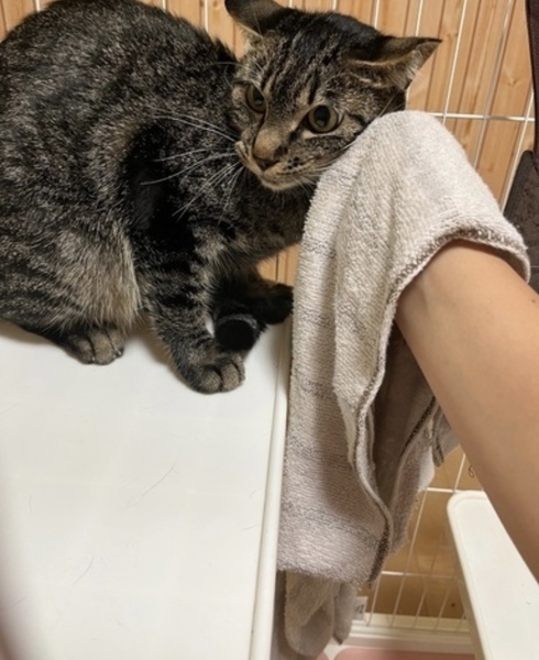 | 特徴(性格など) | キジトラの凪ちゃんです。 男の子です。 なでなで出来ます。抱っこも可能。 手からチュール食べてくれます。 触ってるとここ撫でろーと頭を擦り付けてきます。 にゃんこ相手も大丈夫そうです。 長く外にいたので、一緒にいる期間が長くなればなるほど心を解いてくれると思います。 |