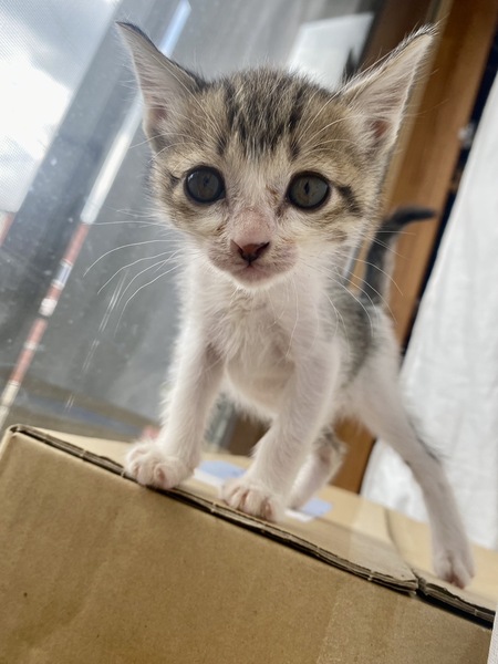| 特徴(性格など) | (画像1、2) ★仮ネーム ミミ ★性別 女の子 ★月齢(予想誕生日) 3ヶ月くらい ★性格 甘えん坊の活発女子。撫でるとすぐにゴロゴロ、人の側が落ち着くみたいです。きょうだいのレン君とかけっこしたり、じゃれあったりしてよく遊びます。隈取りしてるようなお顔が特徴的。お腹はモフモフです! 【医療処置】 検便︰済 ノミダニ虫駆除︰済 3種混合ワクチン ︰1回目 済 2回目 未 エイズ白血病ウイルス血液検査︰陰性 去勢避妊手術︰未 健康状態︰良好 (画像3、4) ★仮ネーム さく ★性別♀(女の子) ★月齢(予想誕生日) 7月初旬~中旬 ★性格 とにかく元気で活発です。ミルクの時からうちにいるので人に対しての警戒心はありません。肩の上によく乗るのでナウシカごっこをしています。 譲渡会はもう少しあとになります。 【医療処置】 検便︰済 ノミダニ虫駆除︰済 3種混合ワクチン ︰ 1回目 未 2回目 未 エイズ白血病ウイルス血液検査︰陰性 去勢避妊手術︰未 健康状態︰良好 (画像5、6) ★仮ネーム つき ★性別♀ ★月齢(予想誕生日) 7月初旬~中旬 ★性格 さくちゃんと姉妹です。 小さな小さな子でしたが体調回復しもりもり食べて大きくなってきました。ミルクから育てているため人馴れはしています。とても可愛い女の子です。 譲渡会参加はもう少し後になります。 【医療処置】 検便︰済 ノミダニ虫駆除︰済 3種混合ワクチン ︰ 1回目 未 2回目 未 エイズ白血病ウイルス血液検査︰陰性 去勢避妊手術︰未 健康状態︰良好 治療中 (画像7、8) ★仮ネーム マシュ ★性別 ♀(女の子) ★月齢(予想誕生日) 7月末くらい ★性格 アビちゃんと兄弟です。食欲旺盛でいつも一番最後まで食べてます。ミルクから育てているため人馴れは抜群です。 譲渡会参加はもう少し後になります。よろしくお願いします。 【医療処置】 検便︰済 ノミダニ虫駆除︰済 3種混合ワクチン ︰ 1回目 未 2回目 未 エイズ白血病ウイルス血液検査︰陰性 去勢避妊手術︰未 健康状態︰良好 |