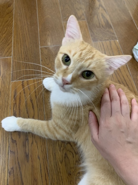 | 特徴(性格など) | 柔らかくて触り心地の良い毛質の白茶の短毛です。 目の色はみどりで、目が大きく小顔です。 尻尾は真っ直ぐで長いです。 エイズ陰性、白血病陰性。 健康状態良好ですが、普段から軟便ぎみです。 年齢は正確にはわかりません。 色々なカリカリを与えていますが、好き嫌いなくよく食べます(食いしん坊です) ウエットフードも与えれば食べます。 水分もたくさん飲む方です。 人間が大好きで甘えん坊かつ甘え上手な子です。 人を見かけるとすぐに寄ってきて構ってほしいとアピールしますし、目が合うと小首を傾げて可愛いポーズをしたり、ゆっくりまばたきしたりして愛を伝えてくれます。 撫でられるのは好きですが、抱っこはあまり好きではありません。でも初めの頃に比べてだんだん抱っこに慣れてきたようです。 人とおでこをくっつけるのが好きです。 すごく嫌なことをされると(病院に行く為にキャリーに入れる、お風呂に入るなど)激しく威嚇しますが、実際の攻撃は甘噛み以上はしたことがないです。 引っ掻いたこともありません。 根本的な性格が優しく、人が大好きなんだと思います。 反面猫には厳しい面があり、先住や他の保護猫を威嚇しますので、できれば1匹で可愛がって頂けるといいのかなと思います。 |
