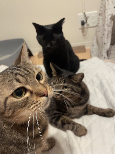 | 特徴(性格など) | きぬえ♀3歳くらい/エイズ(+)白血病(-) アメショに似た柄とコロンとした小さめのフォルムがチャームポイント◎ 少し臆病な性格で、初めのご挨拶はシャーですが攻撃性はほぼないです。 猫が大好きで我が家の先住たちにいつも頭突きに近いような激しめスリスリをしてます。 人馴れは1ヶ月半くらいでなでなで大好き&グルグル声も聞かせてくれるようになりました。慣れるととっても甘えっ子です。 何故かご飯にビビって逃げたりちゅーるにシャーをしたり怖がりなところがありますが、カリカリもウェットも好き嫌いなく食べ、お水は自動の給水器からも飲みます! 先住猫がいるご家庭の方が慣れるのは早いと思います! |