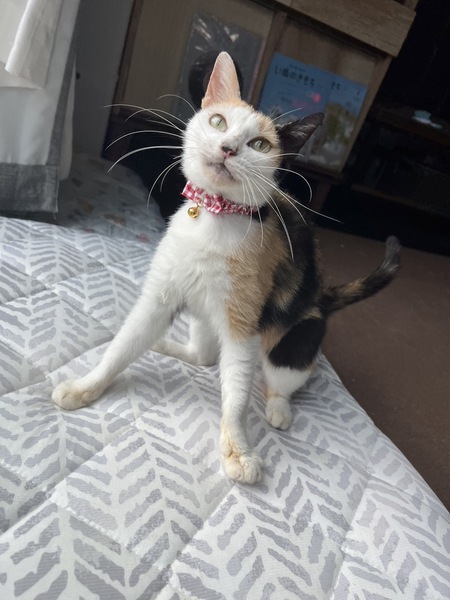 | 特徴(性格など) | 保護当時の体重は、大人猫にも関わらずたったの2キロ。 あまりにも飢えていたからか、餌をあげればすぐに心を許してくれました。ゴロゴロと喉を鳴らして、人の手に「撫でて」と頭突きをしてきます。 とても賢く、トイレは教えなくてもできました。 「おいで」と言うと、とことこと寄ってきてくれます。 話しかければニャンと返事をしてくれる優しい子です。 体格も鳴き声もまるで子猫のように小さいですが、おそらく出産歴もあります。 先住さんとの相性にもよりますが、縄張り争いなどを考えると1匹だけで大事に大事にしてくれるご家庭が良いかもしれません。 適正体重は2キロ後半から3キロ程度。小さくておとなしいお姉さん猫です。 現在保護主宅で少しずつ体重を増やしながら、里親さんを待っています。 |