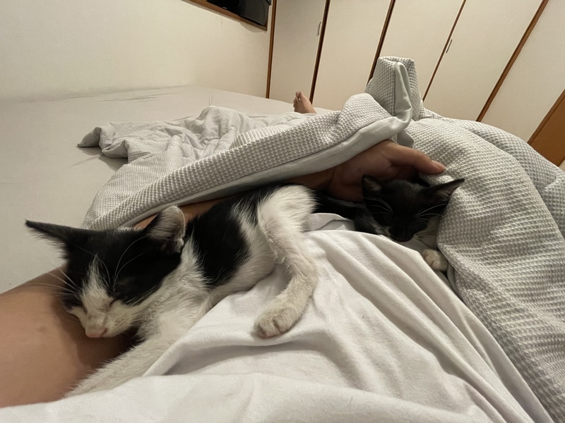 | 特徴(性格など) | 白黒模様でご飯が大好きです! トイレも猫砂の上でしっかりしてくれます |