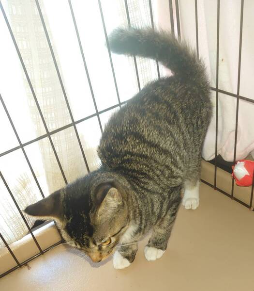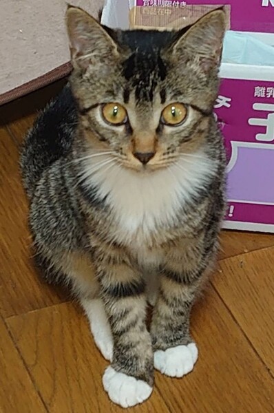 | 特徴(性格など) | つい最近まで外猫だとは思えないほど人間が大好きです 全身サバシロの女の子です ナデナデが好きで ゴロゴロところがりながら、もっとなでてとつぶらな瞳で、下から見つめられると胸がキュンとします 両手両足が白く、手袋靴下を履いているように上品です 長いしっぽを立てて走る姿がキュートです |