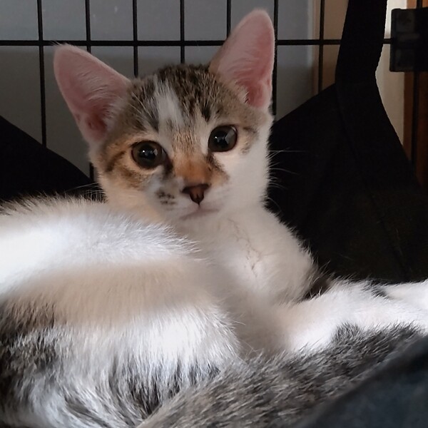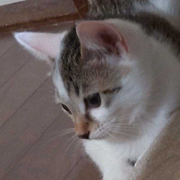 | 特徴(性格など) | 仮名:あずきみるく 毛色:キジ白 瞳の色:茶色 尻尾:長くてまっすぐ 体重:1.2kg(9月13日現在) 性格・特徴:かわいらしい中にも聡明さがにじみ出ているお顔立ちのあずきみるくちゃん。 それもそのはず、生後2カ月でここまで頭が良くて活発な子猫は見たことがありません! ケージから保護部屋に出した途端に猛スピードで走り回り、生後5カ月のやんちゃ盛りのお兄ちゃんたちにも毛を逆立てて立ち向かいます。 まるで、この世に生まれてきたことを心から喜んでいるように、生命力にあふれた子です。 「この小ささではここに上るのは無理だろう」と思う場所にも、どんどん上ってしまいます。 運動能力が高いからというだけではなく、どうしたらあそこに上れるかと、知恵を使ってよく考えてチャレンジしているのです。 ものすごく将来有望な子です。 お目目はちょうどキトンブルーから本来の茶色い瞳に変わる途中のようで、大人猫に比べるとまだ濁りがあります。 もう少しすると透明感のあるキレイな瞳になるはずです。 保護宅で生まれたので人馴れはばっちりですが、今は動き回ることに夢中で、おヒザの上でじっとしていることはできません(^^;) 背中の柄も動物か何かのシルエットに見えますが、常に動いているので全体像を把握できていません。 他の猫に対しては、最初だけ一丁前に威嚇が出ますが、数日のうちにすっかり仲良くなっています。 大人猫も子猫も人間も、あずきみるくちゃんが走り回るのを楽しく見守る毎日です。 今のところ、ママ猫のいちごみるくちゃんか生後5カ月のラブちゃんとペアでの譲渡を希望しています。 もう少し大きくなれば、オス猫との組み合わせや先住猫さんのいるお宅への1匹での譲渡も可能になるかもしれないので、状況が変わった場合には随時更新していくようにします。 健康状態:快食快便の健康優良児です。 ママ猫は保護から2カ月後の検査で猫白血病、猫免疫不全ウイルスともに陰性でした。 子猫は生後4カ月を過ぎないと正しい結果が得られないといわれているため、まだウイルス検査は受けていません。 が、あずきみるくちゃんは保護宅で生まれ、その後陽性の子との接触は一切ないので、陰性確定と考えていいだろうと医師に言われています。 ノミ・ダニ・お腹の虫の駆除1回済み。 お腹の虫はしつこいので、保護後3カ月は毎月駆虫薬を付けます。 それ以前に譲渡の場合は駆虫薬をお渡ししますので、里親様にてお付けください。 |