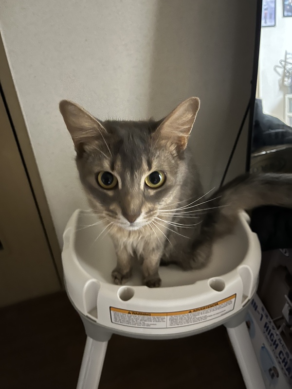 | 特徴(性格など) | 色はブルーのソマリです。 慣れればぐるぐるとすりよってきて膝にのってきたりします。かなりの甘えん坊になります。飼い主にベッタリになると思います。 |