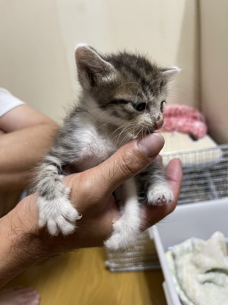 | 里親募集する理由 | 生後1ヶ月ほどかと思われます。 男の子です。 子供が拾ってしまい 健康状態は不明ですが、 素人目で見た感じでは ノミ、ダニなどもいないかと思います。 汚れてもおらずとても綺麗です。 特に問題はなさそうですが 素人判断ですので ご了承下さい。 インコとハムスターを飼っており、 リスク上も金銭的にも 飼う余裕がありません。 可愛がっていただける方、 どうかよろしくお願い致します。 引き渡し場所まで連れて行きます。 近隣の警察署へ届出をし、 飼い主不在を確認しております。 病院へは連れて行っておりません。 水飲めます。 子猫用のドライフードを 砕いて与えてたら食べます。 |