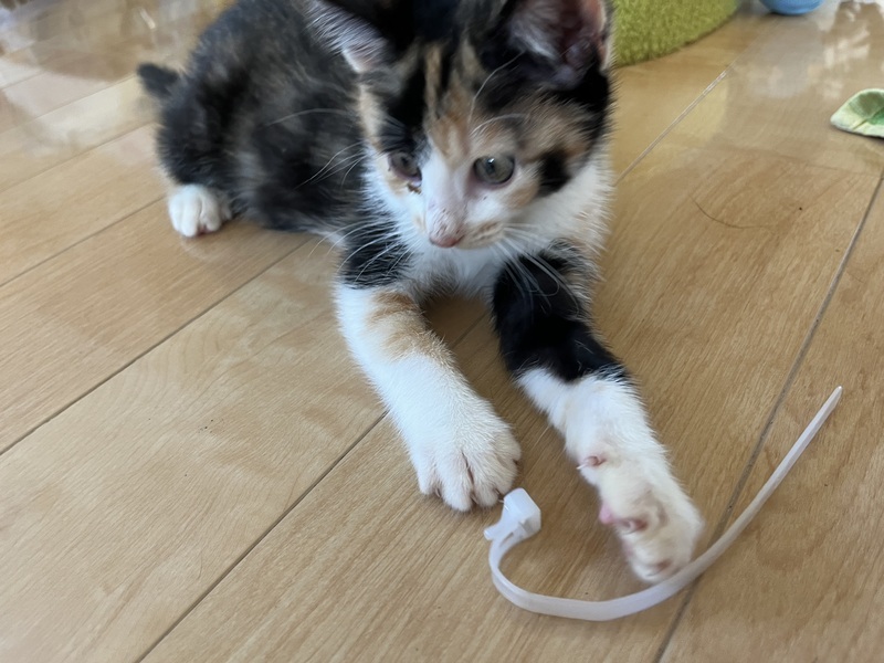 | 特徴(性格など) | 黒茶の多い三毛猫ちゃん 毛の量がすごく多く感じます。1本1本が細い感じです。ブラッシングしてくださる方がいいと思います。 顔が可愛いです。鼻のところにほくろがあります。 すごく人懐こいです。少しビビリです。 元気で走り回ってます。甘噛みする癖ができてしまいました。 外でいたところを人によってきたので保護出来ました。 |