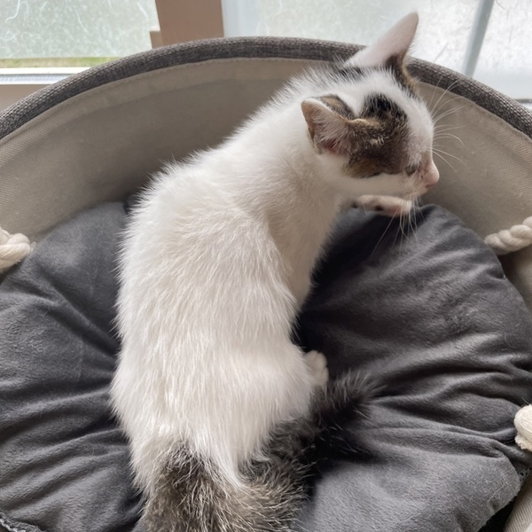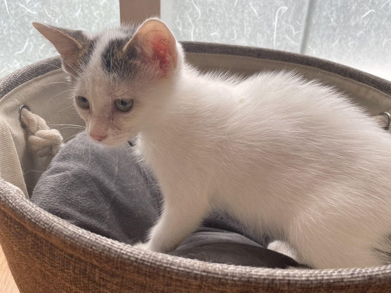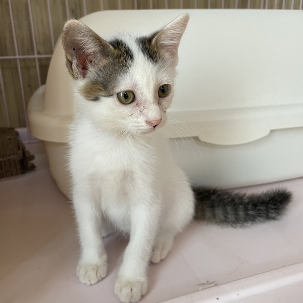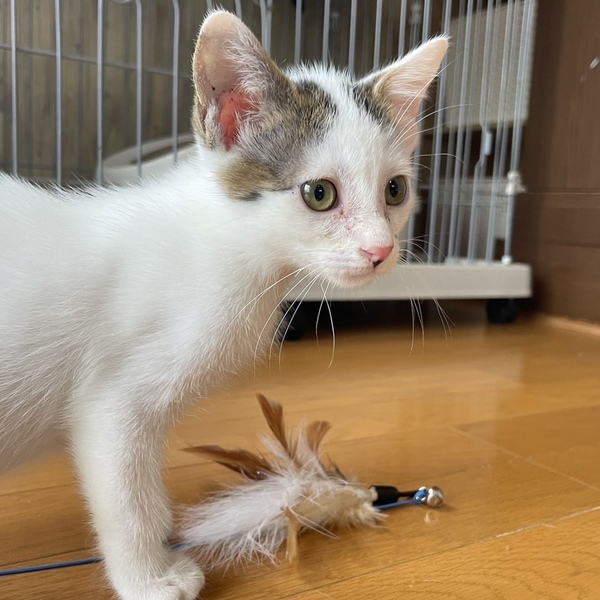 | 特徴(性格など) | 元気いっぱいの子猫、ミルキーくん。 おもちゃを見せると喜んでじゃれつきます。 白に黒毛のハチワレ、黒っぽいしっぽがチャームポイントです。 警察で保護されたときにはたったの120gでした。 4きょうだいで保護され、残念ながらほかの3匹は虹の橋へ。1匹だけ大きくなりました。 ボランティアさんにミルクで育ててもらったため、 とても人馴れしています。 かわいいミルキーくんに、すてきなご縁がありますように。 少しでも気になられましたら、お気軽にご連絡くださいね。 ●より迅速に対応させていただくため、差し支えなければ最初のご連絡で、 「お電話番号と大体のご住所」をお書き添えください。 ●シニア世代の方でもご応募可能です。 |