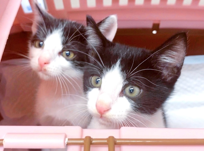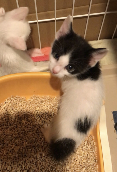 | 特徴(性格など) | スリゴロの甘えたさんで、遊ぶのが大好き! 元気いっぱいの女の子です。 白いボディに牛柄がとてもキュートです♡ 人の手でミルクから育てていますので、人懐こく、警戒心はまったくありません。 仲良し兄妹のセンちゃんと2匹でのご縁もしくは、お留守番を一緒に過ごせる先住猫さんのいる宅を希望します。 |
