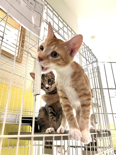 | 特徴(性格など) | 背中が綺麗な茶トラ模様、ハナタブからお腹にかけて白色の毛。 足先はくつしたの白色。 (ギジシロ、ミケ猫、茶白の三兄弟で、茶白は里親さん決定) しゅっとしたお顔でちょっとだけおバカ。 面会は、営業時間内であればいつでもできます☺️ |