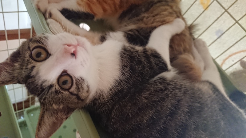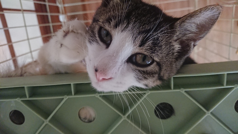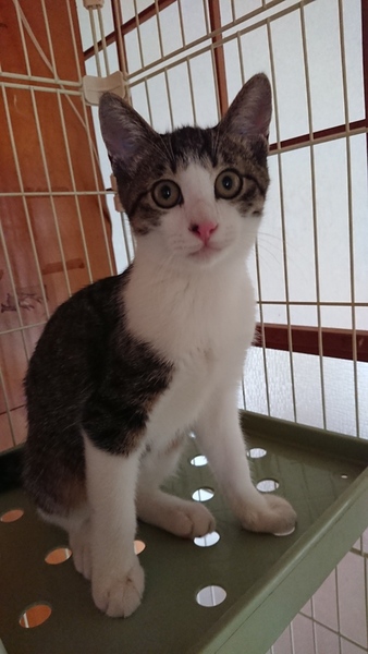| 特徴(性格など) | ・黒と灰色のキジトラ柄と白色 ・健康状態は良好。ワクチン接種済。猫白血病、猫エイズともに陰性。駆虫薬塗布済。カリカリ、ウェットフード、ちゅーる好き嫌いなくよく食べます。トイレできます。 ・大人しく穏やか性格です。慣れている人は抱っこができます。遊びざかり。遊んでいる時はご機嫌です。 |