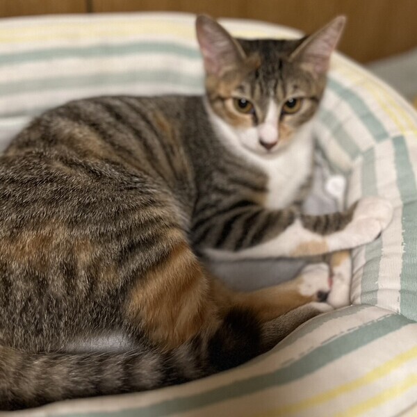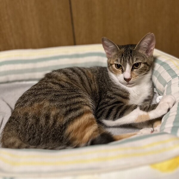 | 特徴(性格など) | ◆ベローチェちゃん スリゴロノ三毛トラ女子 ●月齢の小さな子猫は、以下の条件についてご了承の上で応募をご検討下さい。 ◆お留守番の少ないご家族を希望します。 ◆2匹でお迎えくださるご家族を優先いたします。 ◆小さなお子様のいるご家庭は状況によりお断りする場合がございます。 ◆高齢者のみのご家族からの子猫のお申し込みはお受けしていません。 ○横浜市内で保護しました。 ○生後4〜5ヶ月くらい(2023年9月下旬時点)の三毛トラの女の子です。 ○尻尾は長く真っ直ぐです。 ○三角顔でシュッとしています。 ○人馴れしているスリゴロ女子です。抱っこ、ナデナデ、お膝も好きです。 ○同じく里親募集中の「エクセルシオール」とは一緒に保護された姉妹です。よく似た柄の姉妹ですが、鼻の下の右側だけが白く、腕にトラ柄が多く入っているのがベローチェです。 ○元気にすくすく育っています。 ★ワクチン1回済み、不妊手術済み。 ★猫エイズ、猫白血病ともに陰性。 ☆単身のかたはご相談ください。 ☆★☆★☆★☆★☆★☆★☆★☆★☆★☆★☆ 9月24日(日)荏田にて譲渡会開催! ◎場所・・「島忠 荏田店」 神奈川県横浜市青葉区荏田西1ー3ー14 田園都市線「江田」駅より徒歩約7分 246号線江田駅交差点そば ◎日程・・9月24日(日)(雨天決行) ◎時間・・13時から16時 【15時30分受付終了】 (会場に利用可能な無料駐車場がございます。そちらをご利用くださいませ。) *混雑状況により、中止させていただく場合がございます。 ※参加予定の犬猫は体調により参加できない場合があります。ご了承ください。 ☆★☆★☆★☆★☆★☆★☆★☆★☆★☆★☆ |