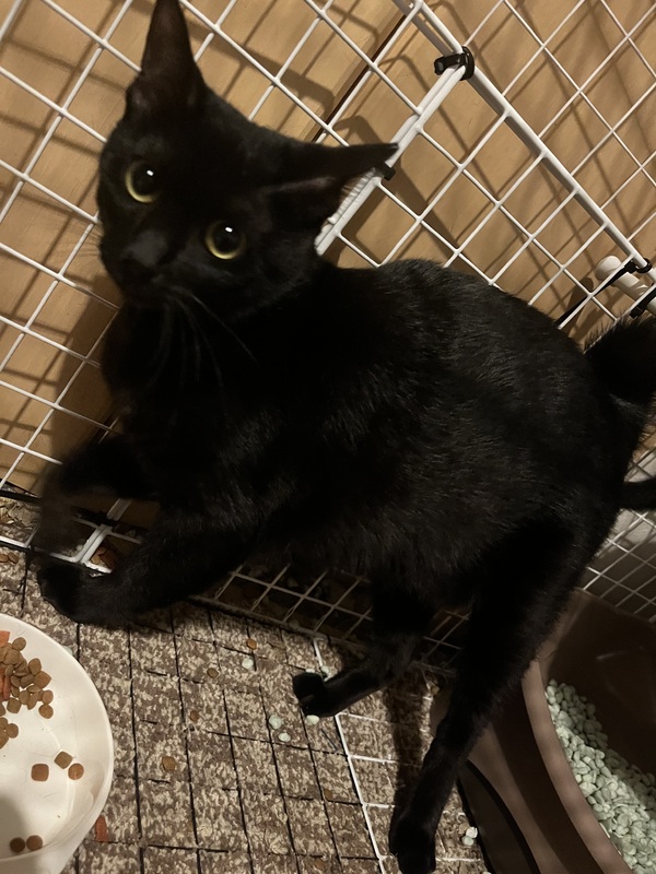 | 特徴(性格など) | 黒猫ちゃんです 少し怖がりさんですが、なでなでが大好きで手を差し伸べるとスリスリ、甘噛みしてきます♪ ご飯の時間になるとご飯ください!と鳴いて訴えてきます。笑 抱っこが苦手ですが根気強く付き合ってくださる里親様募集してます! |