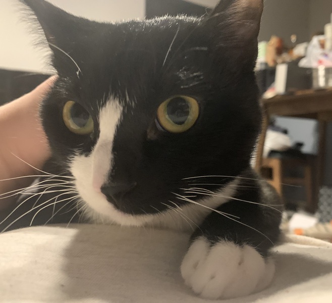 | 特徴(性格など) | 半分マスクを被ってます マイペースな子で甘えん坊、ご飯をよく食べる元気な子です! ご飯の時間になるとゴロゴロスリスリしてきます! 抱っこも大好きで抱っこするとゴロゴロ♪ でも急に部屋中走り回ることもあります。笑 |