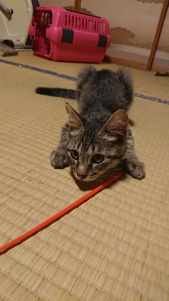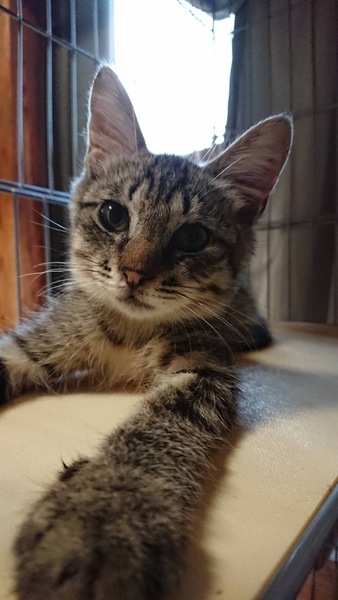 | 特徴(性格など) | 濃いキジトラ柄です。とても可愛いお顔してます。 凄く人慣れしていて甘えん坊な子です。 飼いやすい子だと思います。 人にべったりです。 推定3ヶ月から4ヶ月ぐらいです。 |