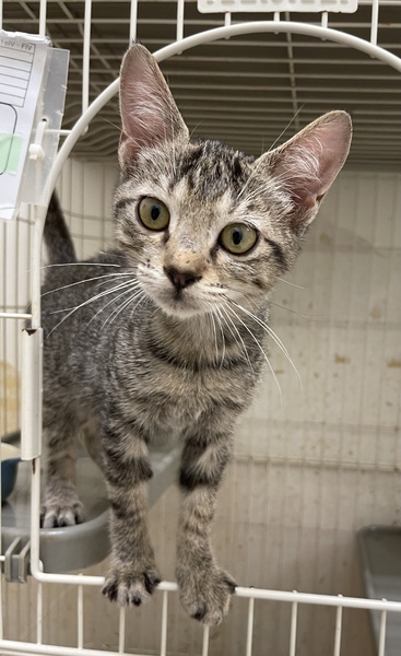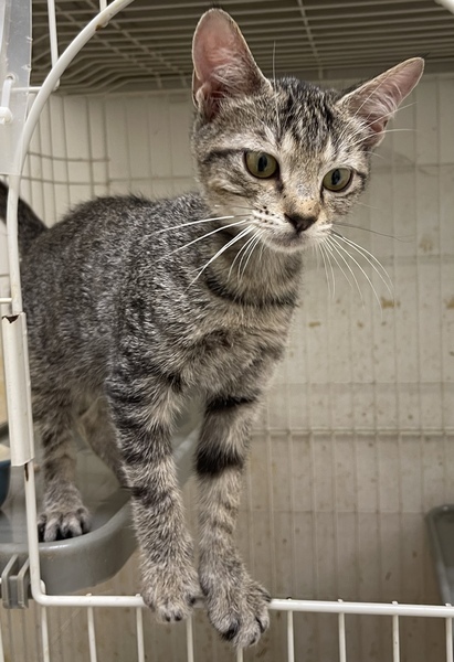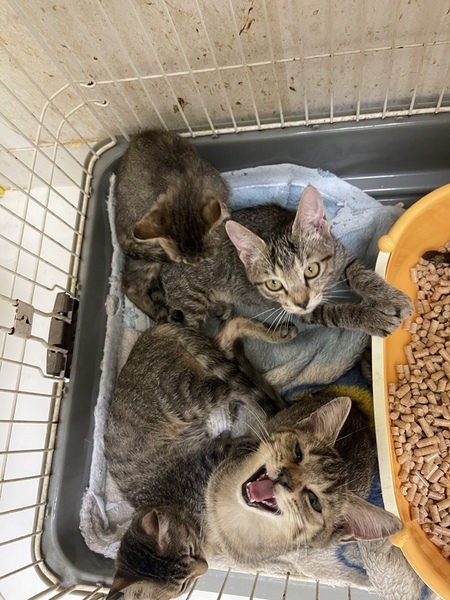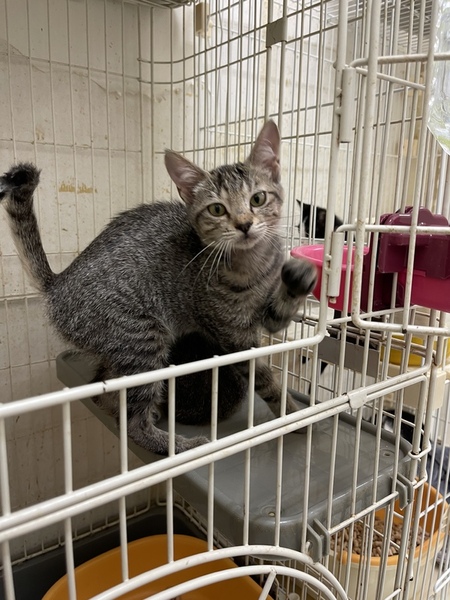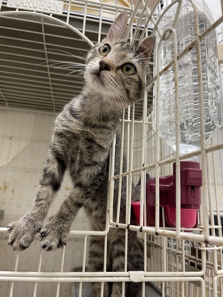 | 特徴(性格など) | 遊ぶのが大好きなキジトラの女の子です。 背中が全体的にたら模様、はなたぶまわりがふんわりブラウンいろ、おはなが薄茶色の綺麗なこです。 肉球の色はあずき色。 一緒に遊んでくれる里親さん募集中! 営業時間中、いつでも面会可能です! |
