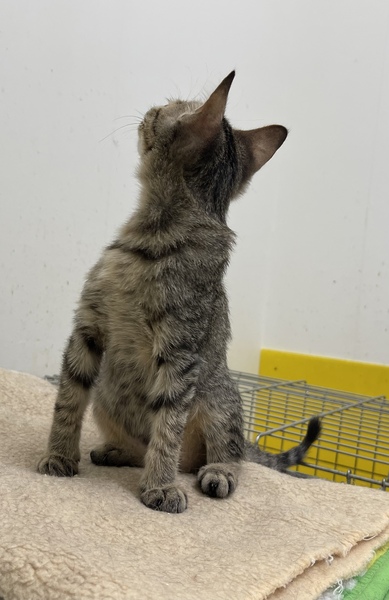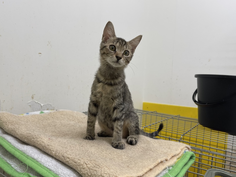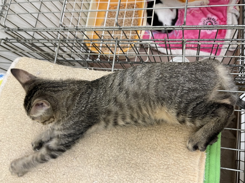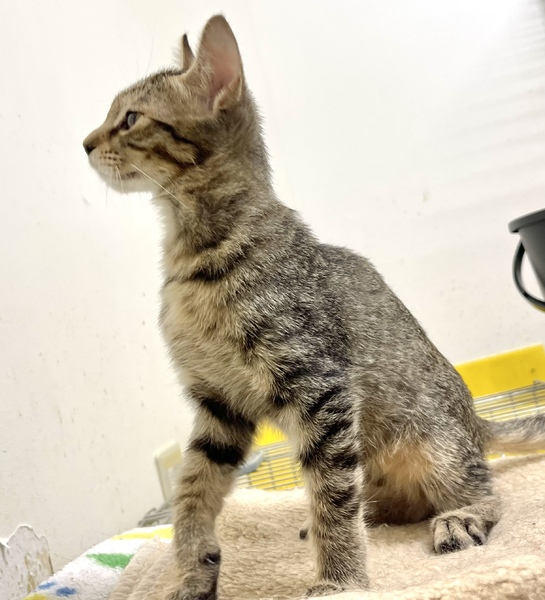 | 特徴(性格など) | おっとり系の寝るのが大好きなキジトラの女の子です。 背中が全体的にたら模様、はなたぶまわりがふんわりブラウンいろ、おはなが鼻頭まで薄茶色の綺麗なこです。 しっぽがまっすぐでしっぽ先に黒多め 肉球の色はあずき色。 一緒に遊んでくれる里親さん募集中! 営業時間中、いつでも面会可能です! |