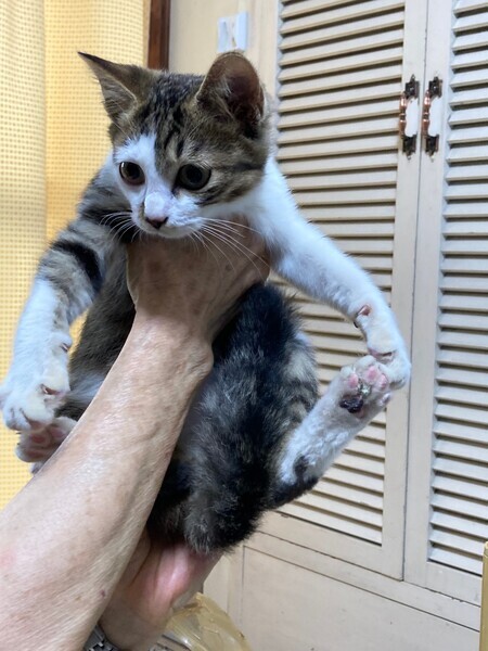 | 里親募集する理由 | 川沿いの道路で母親と兄弟で生活してました。車が通るところなので保護しました。 お見合いも可能です。 猫ちゃんは15年以上生きることもあります。 一生面倒が見れる方よろしくお願いします。 |