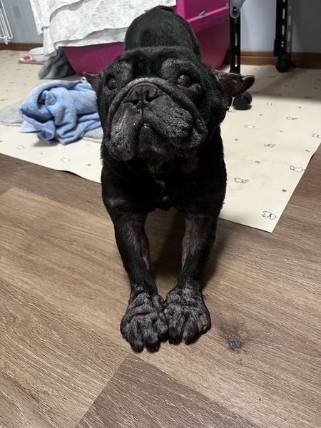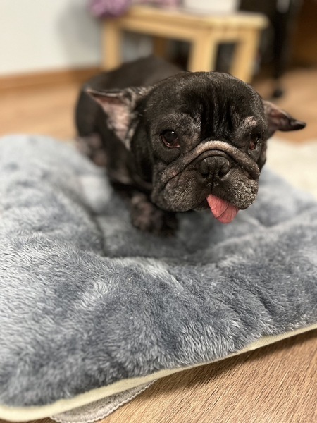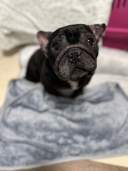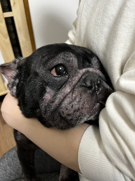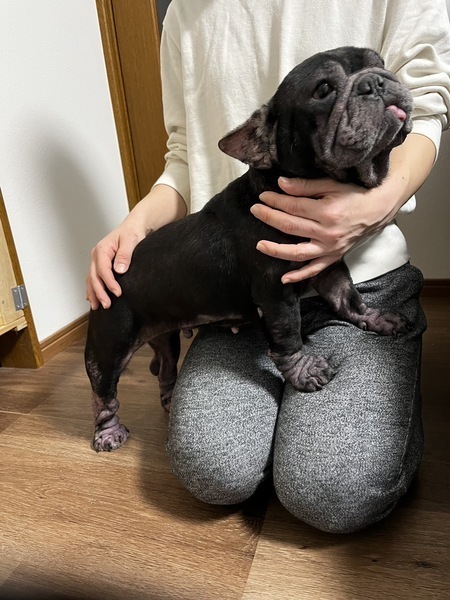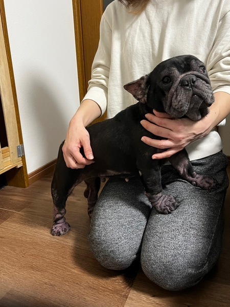 | 特徴(性格など) | 名前:ロテちゃん 犬種:フレンチブルドッグ 性別:メス♀ 毛色:黒 年齢:8歳くらい 体重:8.6kgくらい 性格:とっても平和主義者で決して怒らずとても優しいおっとりさん。 人も大好きで、どんな人にもちゃんと挨拶の出来る子。 レスキュー時より皮膚の状態が悪く、全身をかなり痒がっており、炎症や掻き傷が数カ所に見られた為、週1回のシャンプーと投薬にて様子観察中。 両眼にチェリーアイがありましたが、手術しました。 右眼ドライアイのため1日3回点眼薬。左眼は腫瘍のため1日5回の点眼薬。 トイレシートは使える。7割ほど成功だが、食糞するのでタイミングを把握するよう心がけている。 留守番と夜間はハウスでとても静かに過ごせる。 散歩は未経験なので抱っこから行う予定。よく食べ、よく寝る。 皮膚をケアして寄り添って生活してくださるご家族様をお待ちしております。 |