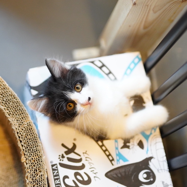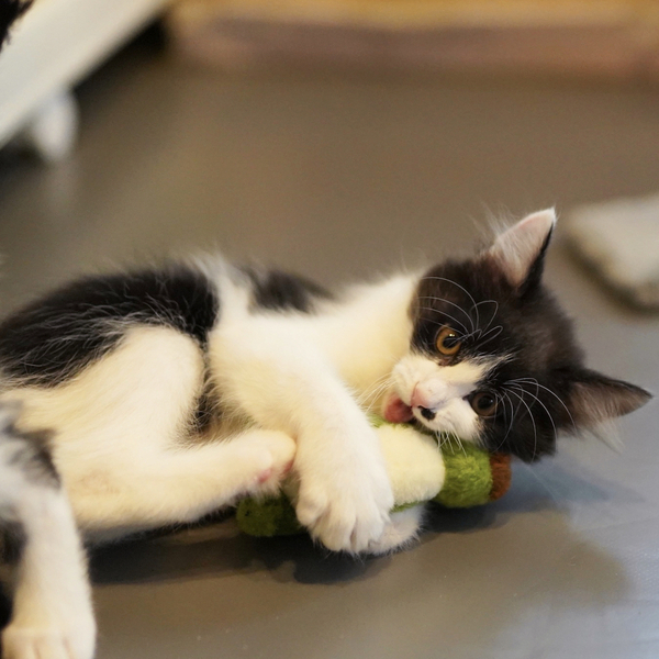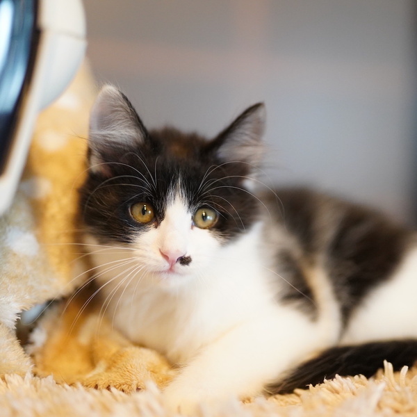 | 特徴(性格など) | 半長毛なのか、子猫のお手本みたいにフワフワな女の子。 見た目はフワフワだけど、中身は活発なやる気満々女子で、男の子のピンくんとよく取っ組み合いをしています。 人懐っこく、すぐにゴロゴロ喉を鳴らす人間大好きな甘えん坊でもあります。 長い尻尾の先がちょっぴり白いのもおしゃれ。 推定8月7日ごろ生まれ。 まだ小さいのでお留守番時間が短く、健康管理や脱走対策の他、子猫が安全に暮らせるよう、お部屋が片付いているご家庭とのご縁を希望します。 仲良しのみつご(ピン、ポン、パン)の誰かと一緒にお迎え頂くか、子猫OKな若い先住猫さんのいるご家庭だと嬉しいです。 愛護センターで入れたマイクロチップが原因なのか、首の後ろに小さな脱毛があり経過を見ています。 本人は全く気にしていません。 |