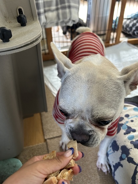 | 特徴(性格など) | 名前:ジェラート 犬種:フレンチブルドッグ 性別:メス♀ 毛色:クリーム 年齢:5歳くらい 体重:10キロくらい 性格:とっても人懐っこくて、可愛いジェラートです! 他の犬ともジェラートは大丈夫です。 お子さんが走ったりすると一緒に走って追いかけたり、転がって触られるのに嬉しがったりしてます。 散歩は楽しそうにテクテクルンルン歩きます。 たまに大きな音とかにびっくりしてますが、リード持ってる人を見て一生懸命歩きます。 チャイムなどには吠えないですが、外の物音とかに吠えたりします。 あと、他の犬が吠えたら一緒に吠えたりしています。 トイレはトイレしそうなところ3か所くらいにトイレシートを敷いていたら、トイレシートで出来ます。 たまにはみ出します。うんちはすぐに取らないと食べちゃいます。 留守番はおとなしくできるのですが、長時間になったり、タイミングが悪かったら、ハウスの中でうんちまみれてしまうので、お留守番は長くない方の方がいいと思います。 今まで辛い環境に居たので、丸っと受け入れてくれて、ずっと大事に愛してくださる方をお待ちしております。 |