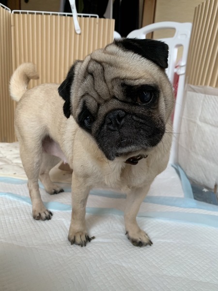 | 特徴(性格など) | 名前ースノウ 犬種ーパグ 性別ーメス 年齢ー6〜8歳 体重ー7.5kg(ダイエット頑張ってます) 性格ーおとなしい おっとりパグさんです。 嫌なことをすると噛まれることがあります。 目は両目とも失明している可能性あります。 トイレートイレの認識が出来ません。 今は、サークルの中を全面トイレシート敷いて対抗しています。 留守番ー今は可能ですが、将来的に寝たきりになる可能性が高い(癲癇の具合による)のでお留守番出来なくなります。 散歩ーあまり脳への刺激を与えたくないので今はしていません。 レスキューした時から、強い癲癇発作がありました。 診断した結果、先天性の脳疾患が見られた結果、癲癇を起こしていたようです。 疾患名としては、『頭蓋内くも膜嚢胞』との事です。 徐々に脳の中に水が溜まっていくものです。 かなり進行していて水が大脳と小脳を圧迫して押しつぶすような形になっていました。根本的な治療法はありません。 現在、認知機能の低下でコミュニケーションの細かい疎通はできません。 トイレの場所も認識できません。 触られる刺激に過敏になっていて撫でる事もスノウにとってストレスになるみたいです。 ケアのために体を固定すると暴れて噛もうとしてきます。 前提疾患もあり、立ってる時はクルクル旋回しています。また発作を起こすので、1日3回抗てんかん薬の投薬が必要です。 病気は深刻なものですが、今は毎日ご飯をモリモリたべで日向ぼっこしながら静かに1日を過ごしています。 刺激的な毎日よりかは、落ち着いて穏やかに日々を過ごしてもらえたらいいなと思います。 預かりから一言ー症例が少なくかつ深刻な脳の病気を持った子です。病気の影響で常にぼーっとしており通常の意思疎通は困難です。呼びかけにはたまに反応してくれる事があります。 症状が落ち着いている時に撫でるとそのままじっとしていてくれる事があるので、撫でられる事が気持ち良いと感じているかもしれません。 大変な病気を耐えてきた子でとっても可愛らしい女の子です。 |
