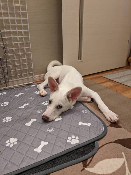 | 特徴(性格など) | 性格:室内では随分慣れて元気いっぱい、明るくて天真爛漫です 犬が好きで遊びたくて先住犬にちよっかい出してます 大きな声で近づいてくる人が苦手です ゲージインの時、遊んでほしくてキャンキャン要求鳴きがありますが 環境慣れで改善すると思います。 食いしん坊で集中取りやすいこなのでトレーニング楽しめるこだと思います。 外はまだ怖いですがお散歩上手になりました。 |