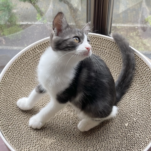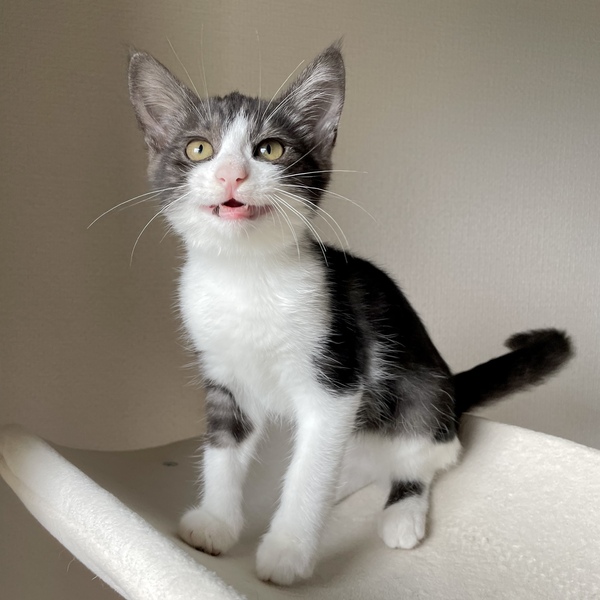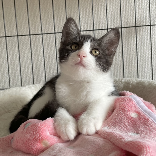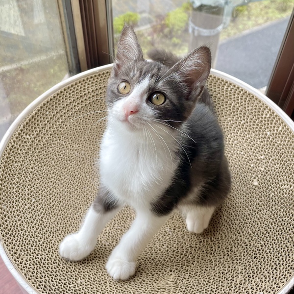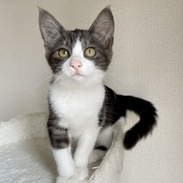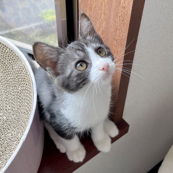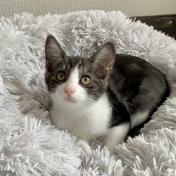 | 特徴(性格など) | 愛らしすぎるお顔に濃いグレーの毛色が魅力のハチワレガール 5兄弟唯一の女の子で、一番警戒心が強い子でしたが今ではスリゴロ 撫でられるのが大好きな甘えん坊さんになりました^^ 何をしていてもとにかく可愛い! 控えめにあまえる姿にはハートを鷲掴みにされちゃいます(笑) あそぶ時は子猫らしくパワフルで、おもちゃも大好き!にゃんプロだって男の子たちに負けてません! 環境に慣れるまで少し時間がかかるタイプなので、雫月のペースでゆっくり向き合って下さると嬉しいです 健康管理の徹底、清潔な飼育環境、脱走対策は必須になります 具体的なお話をするうえで、お部屋のお写真(全体・窓・玄関)や間取り図を持参頂けますと大変ありがたいです 大切なわが子と思ってお預かりしております 大きな愛で包み込んで下さるご家族からのご応募をお待ちしております ⭐︎兄妹一緒にお迎え頂けるご家族を優先させていただきます ⭐︎子猫のためお留守番時間が短めのご家庭を希望しております |