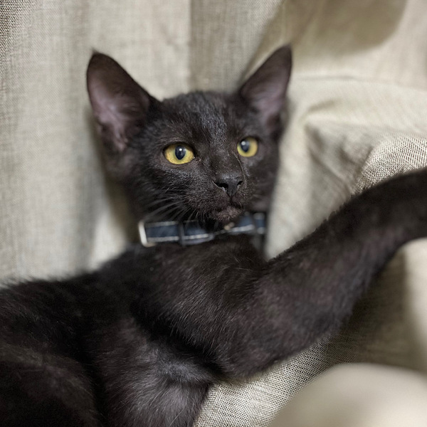 | 特徴(性格など) | なでなでが好きな甘えん坊です。ゴロゴロ喉を鳴らして膝に乗り甘えてきます。ご機嫌な時は尻尾をゆらゆら揺らします。 人間とも猫とも仲良くできる穏やかな性格の猫です。 |