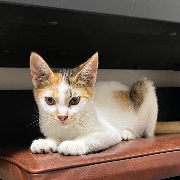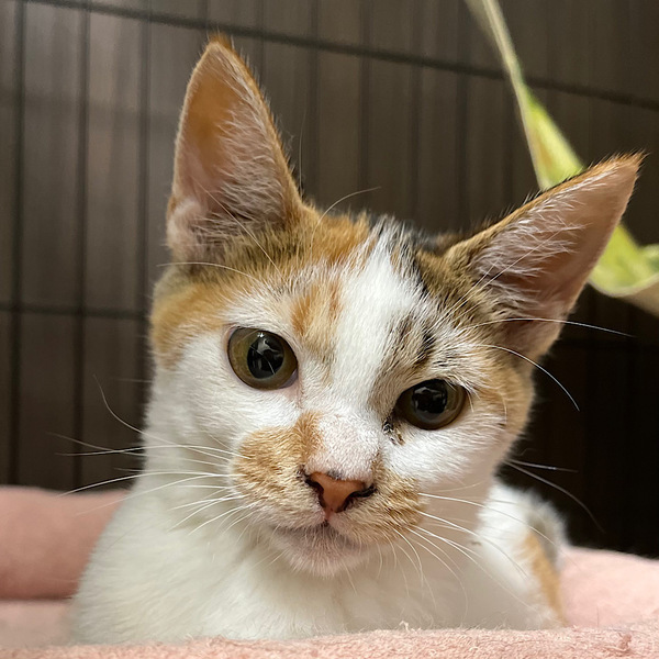 | 特徴(性格など) | 長い手足とかぎしっぽがチャームポイントの三毛猫です。 人間にはフレンドリーな性格でゴロゴロ喉を鳴らして甘えてくれます。おもちゃにも興味津々で、ひとり遊びも上手です。 猫同士では男の子にも負けません。遊ぶ時は活発に、休む時は猫同士でべったりしないマイペースな猫です。 可愛い丸顔のおばあちゃんになるまで、慈しんで一緒に暮らしてくれる方にお願いしたいです。 三毛の女の子と茶白の男の子の3にゃん兄妹です。きょうだいと一緒の譲渡をご希望の際はご相談下さい。 |