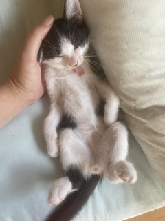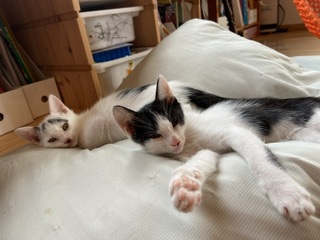 | 特徴(性格など) | しっぽの先だけ白い、ハチワレちゃんと 白多め、困り眉の白黒ちゃん兄弟です。 保護して1週間、抱っこできるまで人慣れしてきました(*'▽'*) |