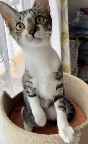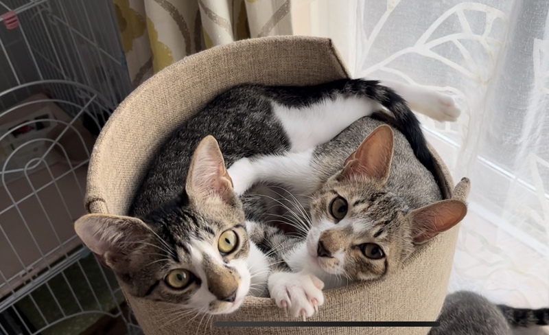 | 特徴(性格など) | そっくりなキジ白3姉妹です。 コアラちゃんはケージからだしてあげると膝に乗ってきてしばらく離れない甘えん坊です。 3姉妹みな仲良しなので、2匹以上の譲渡でも、1匹で迎えてくださっても大歓迎です。 今はあまり遊んであげれてないので、生涯のお家で思いっきり甘えさせてあげたいです。 家族として大切にしてくださる方募集しています。 |