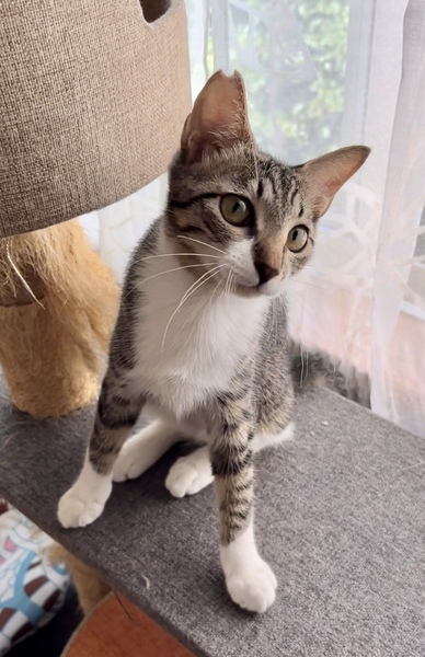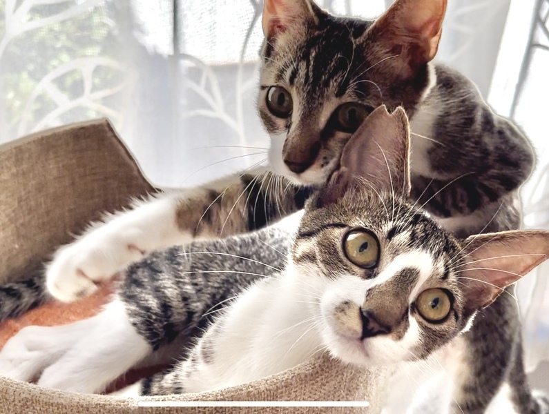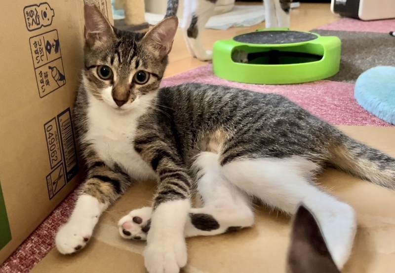 | 特徴(性格など) | 3姉妹のお姉ちゃんタイプ。 好奇心旺盛、天真爛漫、撫でてあげるとお返しに一所懸命舐めてくれます。 みんな呼ぶと返事してくれるタイプです。 3姉妹みな仲良しなので、2匹以上の譲渡でも、1匹で迎えてくださっても大歓迎です。 今はあまり遊んであげれてないので、生涯のお家で思いっきり甘えさせてあげたいです。 家族として大切にしてくださる方募集しています。 |