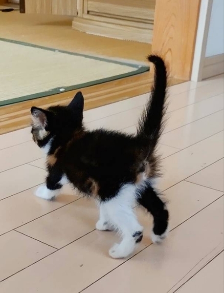 | 特徴(性格など) | 三毛のハチワレ 控えめな性格で人懐っこいです。 |