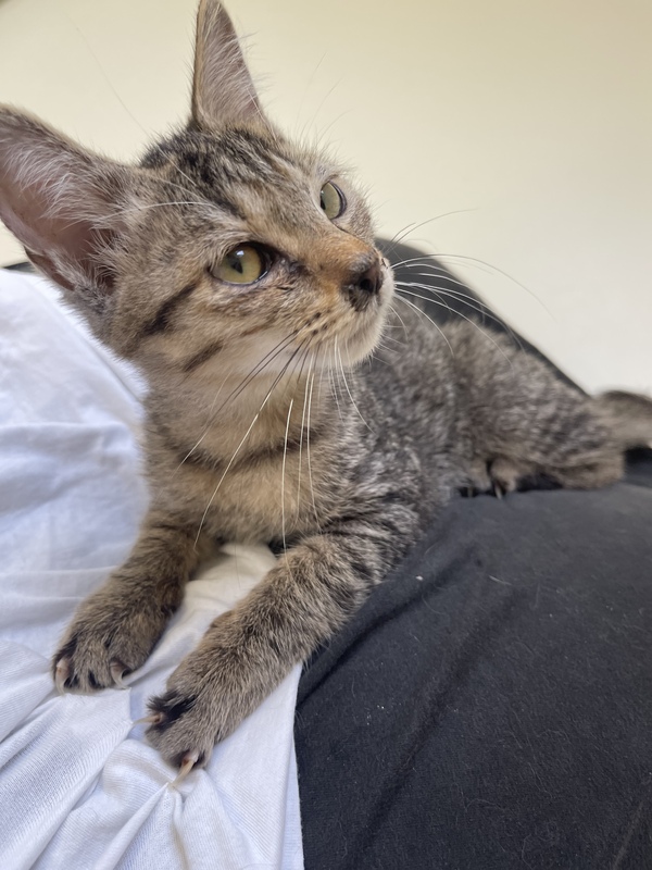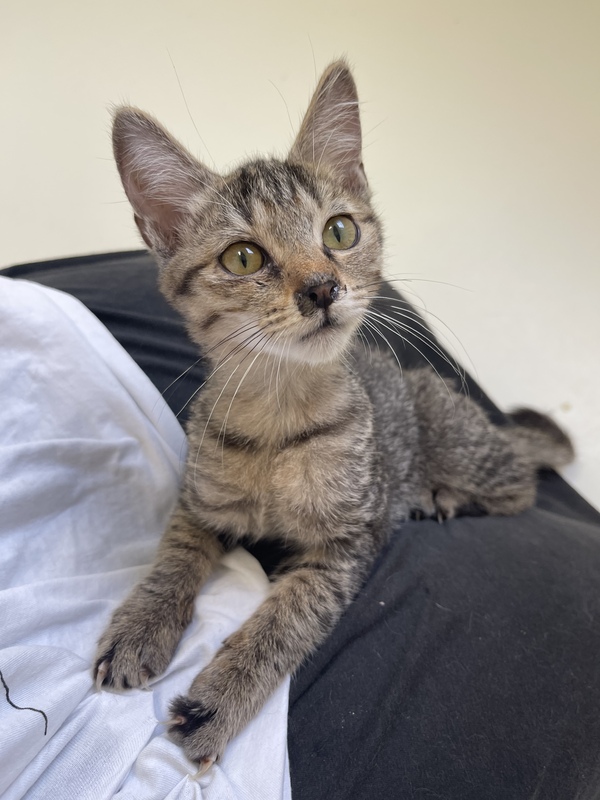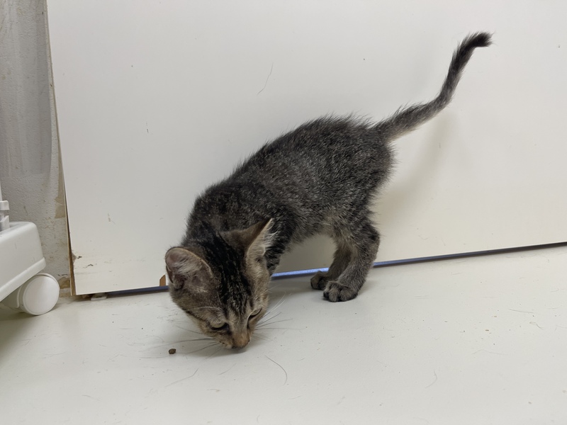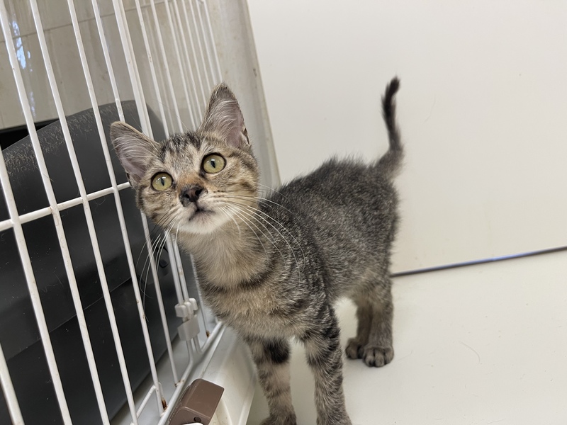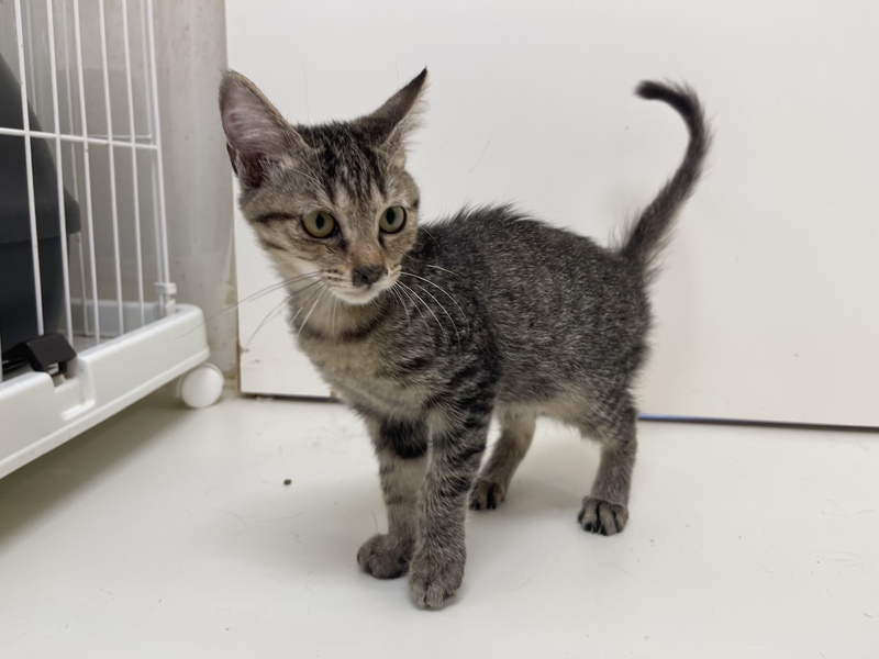 | 特徴(性格など) | 甘えん坊さんのキジトラの男の子 細かめのしましま模様、おでこのMはくっきり!! おひざに乗ってゴロゴロ言うのがすきみたいです! 肉球の色は暗めの小豆いろ。 一緒に遊んで甘えさせてくれる里親さん募集中! 営業時間中、いつでも面会可能です! |