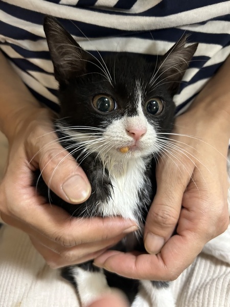 | 特徴(性格など) | 大人しく抱っこをさせてくれたり触らせてもくれます。まだ警戒心はあるので隠れていることが多いです。 子猫なので慣れるのは早いとは思います。 |